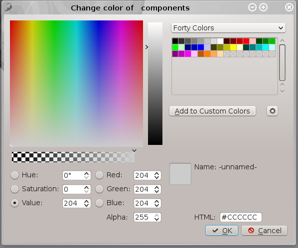 Change the color of the rendering of the current selected mesh. Use its widget (pop-up) to select the desired color. More...