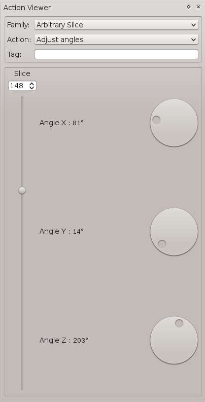 This action simply display the widget allowing the user to select an angle to orientate the arbitrary slice. More...