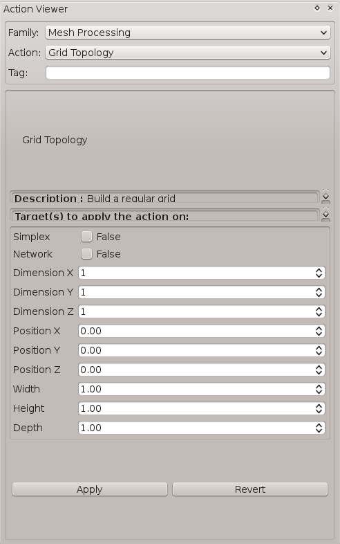 The grid topology action widget allows you to select the desired dimensions of your sphere.