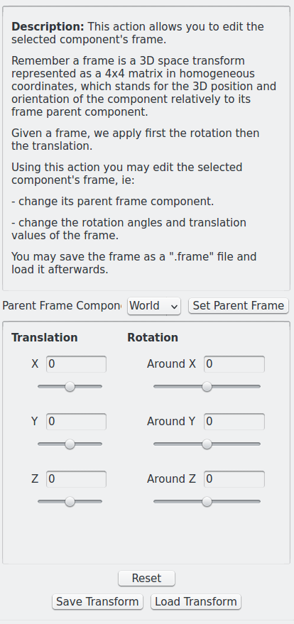 New action edit frame allows one to completly (and betterly) edit one component's frame. From the translation to the rotation and the parent, you will be able to edit them all!