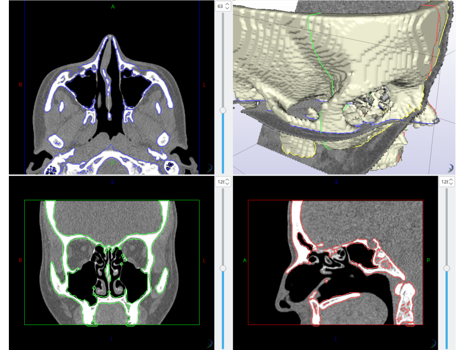This new action adds the visualization of the contour of a mesh onto a 3D image. This action creates mesh contour in the direction of the axial, coronal, sagittal and arbitrary slices and “project” them in the 3D and 2D viewers.