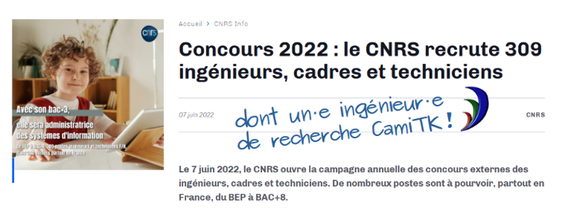 Ce concours réunit deux postes, le poste qui concerne CamiTK est le deuxième sur la fiche du concours (en bas de la page). Même si le jury est le même pour les deux postes, ce sont bien deux postes indépendants.